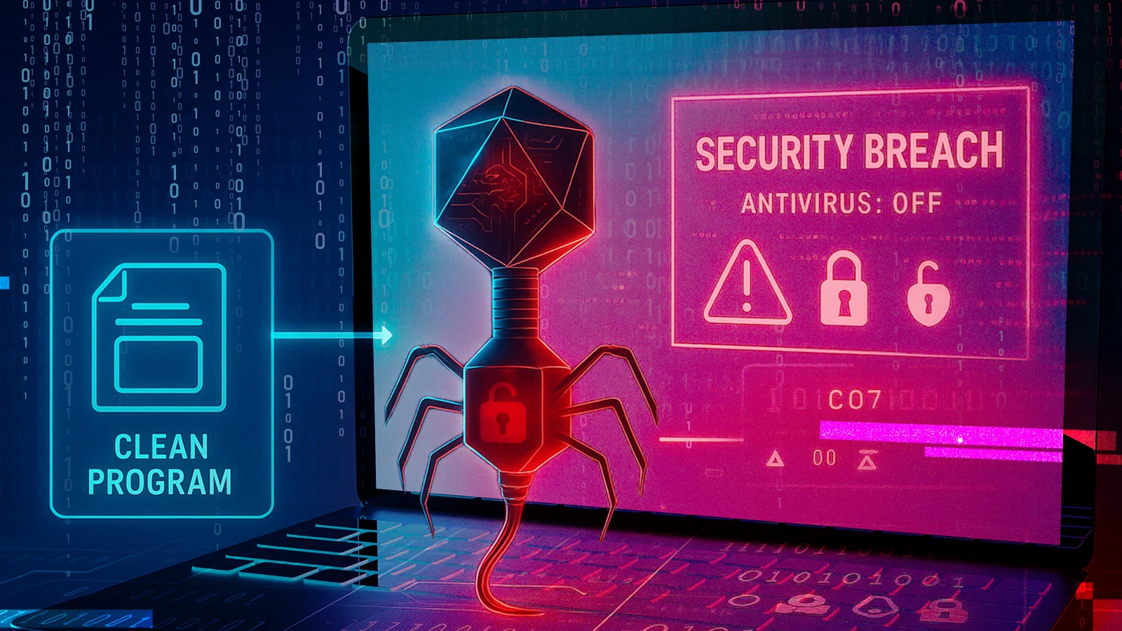 A computer virus is a malicious program—or form of malware—that’s designed to disrupt your computer and spread to other devices. It attaches itself to a valid program, alters the code, then replicates itself to infect other files or systems. A virus can destroy data or cause your machine to stop working.